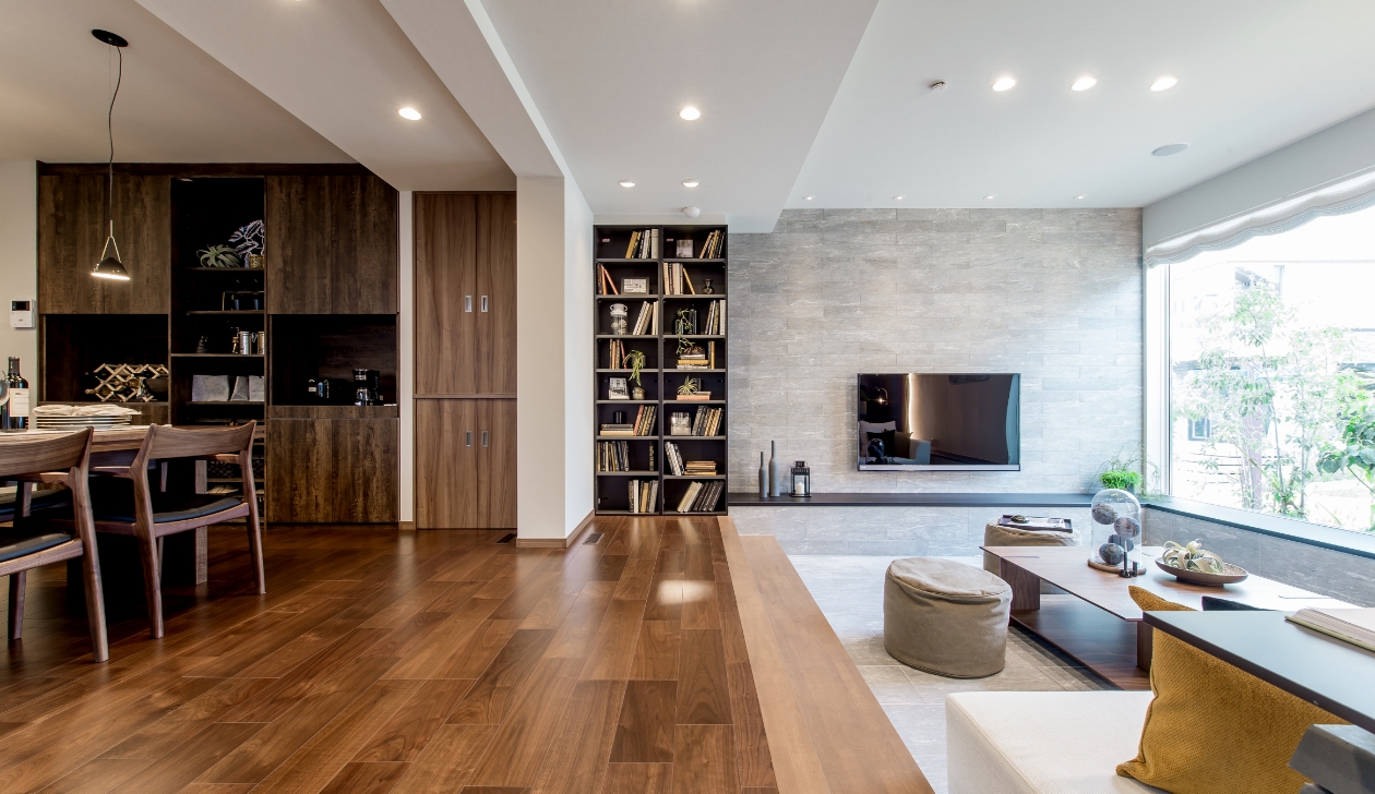 レスコハウス独自のWPC工法は、平屋住宅にも最適。壁全体で建物を支える地震に非常に強い構造だから間仕切りを少なくした空間設計が可能で、コンパクトながら開放感のある空間を実現することができます。また、間仕切りを少なくすることで、空間同士がゆるやかにつながり、どこにいても家族の気配を感じる事ができる安心感をもたらしてくれます。レスコハウスの平屋住宅は、程良い距離感が心地よい、心にゆとりが生まれる住まいです。